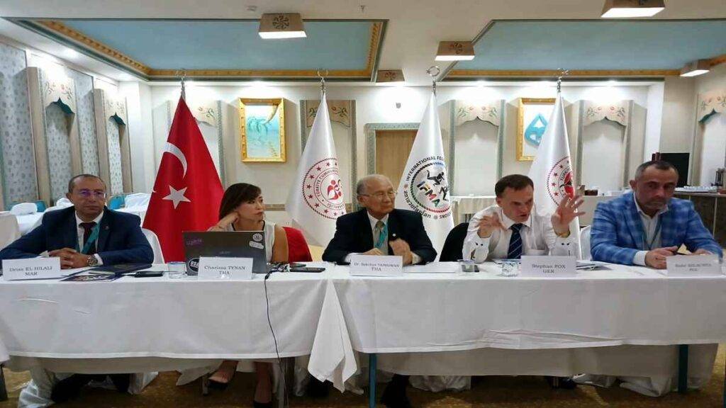 وقد تميز هذا الاجتماع الهام بالمصادقة على جدول اجتماعه الذي تضمن كلمة تقدم بها رئيس الاتحاد الدولي IFMA الدكتور ساكشيي تابسوان ، وكلمة ألقاها السيد حسن يلديز رئيس الاتحاد التركي للمواي طاي ، وأيضا بعض الإحاطات التي أعلنتها السيدة شاريسا تاينان المدير العام للاتحاد ، كما تضمن أيضا نقطا حول اجتماعات الجمعية العمومية والمكتب التنفيذي للاتحاد الأوروبي للمواي طاي وتقريرا حول دورة الألعاب العالمية التي ستحتضنها العاصمة السعودية الرياض شهر أكتوبر الجاري ، كما تمت أيضا مناقشة أهم الأحداث الرياضية الكبرى التي يتهيأ لها هذا الاتحاد الدولي وضمنها بطولة أوروبا والدوري المفتوح أنطاليا 2023 ، وبطولة الصالات المغلقة والألعاب القتالية لسنة 2024 ثم الألعاب العالمية 2025 والنسخة القادمة من الألعاب الأوربية ثم وضعية المواي طاي سنة 2028 إضافة إلى دورة الألعاب الأولمبية باريس 2024 .