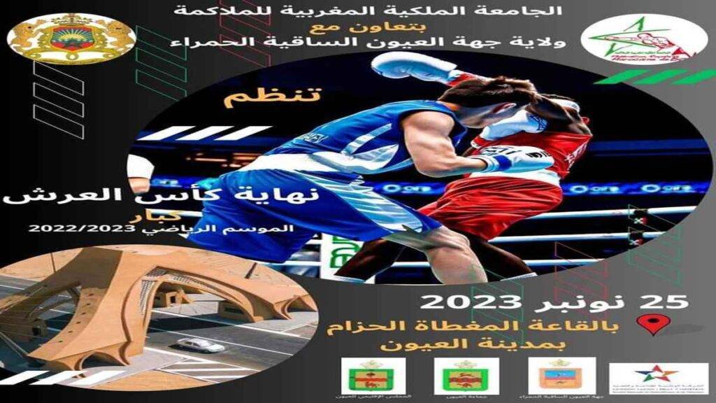قررت الجامعة الملكية المغربية للملاكمة بتعاون مع ولاية جهة العيون الساقية الحمراء تنظيم نهائي كأس العرش للرجال (كبار) للموسم الرياضي 2022-2023 يوم السبت 25 نونبر بالقاعة المغطاة الحزام بمدينة العيون.