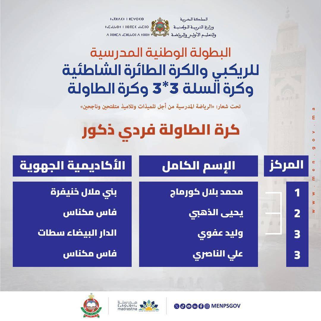 اختتمت بنجاح كبير، في مدينة الدار البيضاء، فعاليات البطولة الوطنية المدرسية للريكبي والكرة الطائرة الشاطئية وكرة السلة 3×3 وكرة الطاولة، والتي عرفت مشاركة قوية لأكثر من 400 تلميذة وتلميذ من مختلف المؤسسات التعليمية المؤهلة عن البطولات الجهوية المدرسية، في فئة مواليد 2006-2007-2008 (U18).