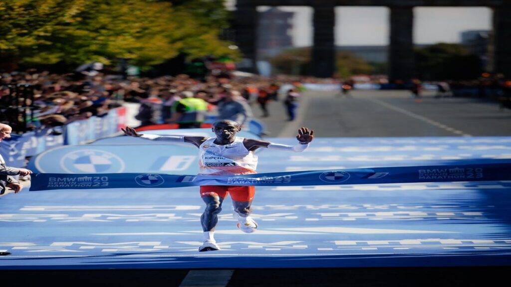 وقطع كيبشوج (38 عاما)، حامل الرقم القياسي لأسرع زمن سباقات الماراثون، مسافة السباق الذي يحمل الرقم ال49 و يمتد لمسافة 42.195 كيلومترا في زمن مقداره 2.02.42 ساعة، ليفوز بخامس مارثون له في برلين، و يتأهل إلى دورة الألعاب الأولمبية باريس 2034