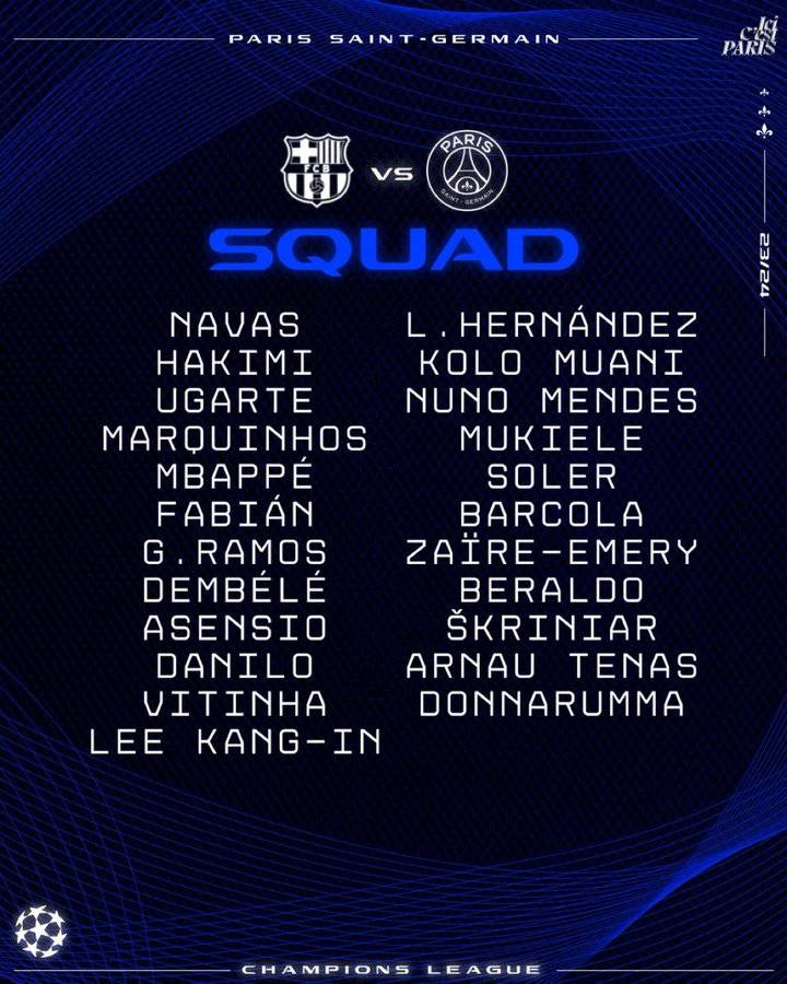 وجاءت القائمة بالكامل كالتالي نقلا عن حساب النادي الباريسي في منصة إكس: