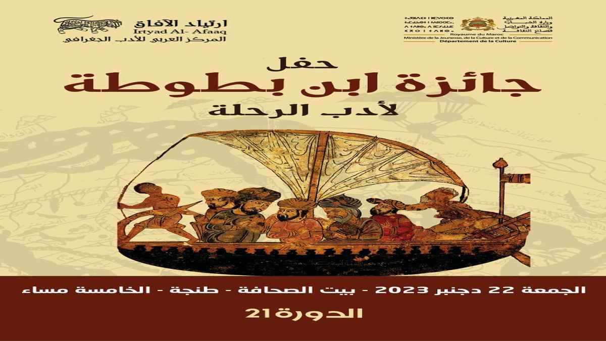 شهد بيت الصحافة بمدينة طنجة ليلة الجمعة 22 دجنبر حفل تقديم جائزة ابن بطوطة لأدب الرحلة في دورته الواحدة والعشرين المنظم من طرف وزارة الشباب والثقافة والتواصل والمركز العربي للأدب الجغرافي.
