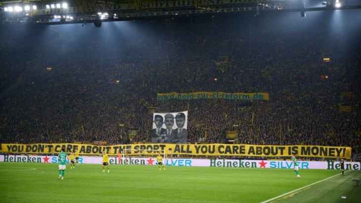 ورفعت جماهير نادي بوروسيا دورتموند الألماني لافتات تضمّنت عبارات شديدة اللهجة لمسؤولي كرة القدم في أوروبا إلى جانب ملصق كبير يضم 3 شخصيات بعينها وذلك خلال مواجهة ​نيوكاسل يونايتد​ في ​دوري أبطال أوروبا​.