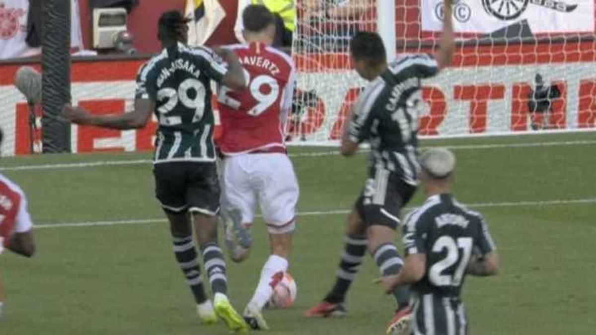 رغم وجود مدافعين من مانشستر ينافسان هافيرتز لكنهما لم يلمسانه أبدا وهافيرتز سقط وحاول خداع الحكم الذي سقط في الفخ واحتسب ركلة جزاء خاطئة لأرسنال لكن حكم تقنية الفيديو تدخل وطلب من الحكم المجيء إلى الشاشة الصغيرة ومشاهدة الحالة والأخير لم يتأخر في العودة عن قراره وإلغاء ركلة الجزاء.
