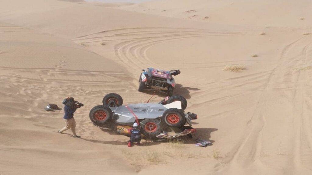 انتهى دفاع الإسباني كارلوس ساينز عن لقبه في رالي داكار مبكرًا، بعد انسحابه إثر المرحلة الماراثونية التي استمرت 48 ساعة. تعرضت سيارة ساينز، البالغ من العمر 62 عامًا، وهي من طراز “فورد رابتور”، لأضرار جسيمة بعدما انقلبت رأسًا على عقب في اليوم السابق.