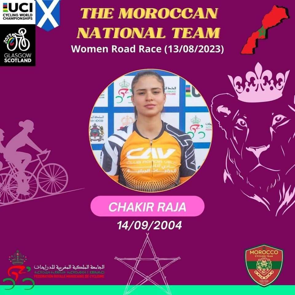 كما تضم البعثة ، المدربة و المؤطرة الوطنية نورة زوركي، التي تم انتقاؤها من طرف الاتحاد الدولي للدراجات لتكون ضمن الأطر التقنية المتطوعة العاملة في مواقع المنافسات.