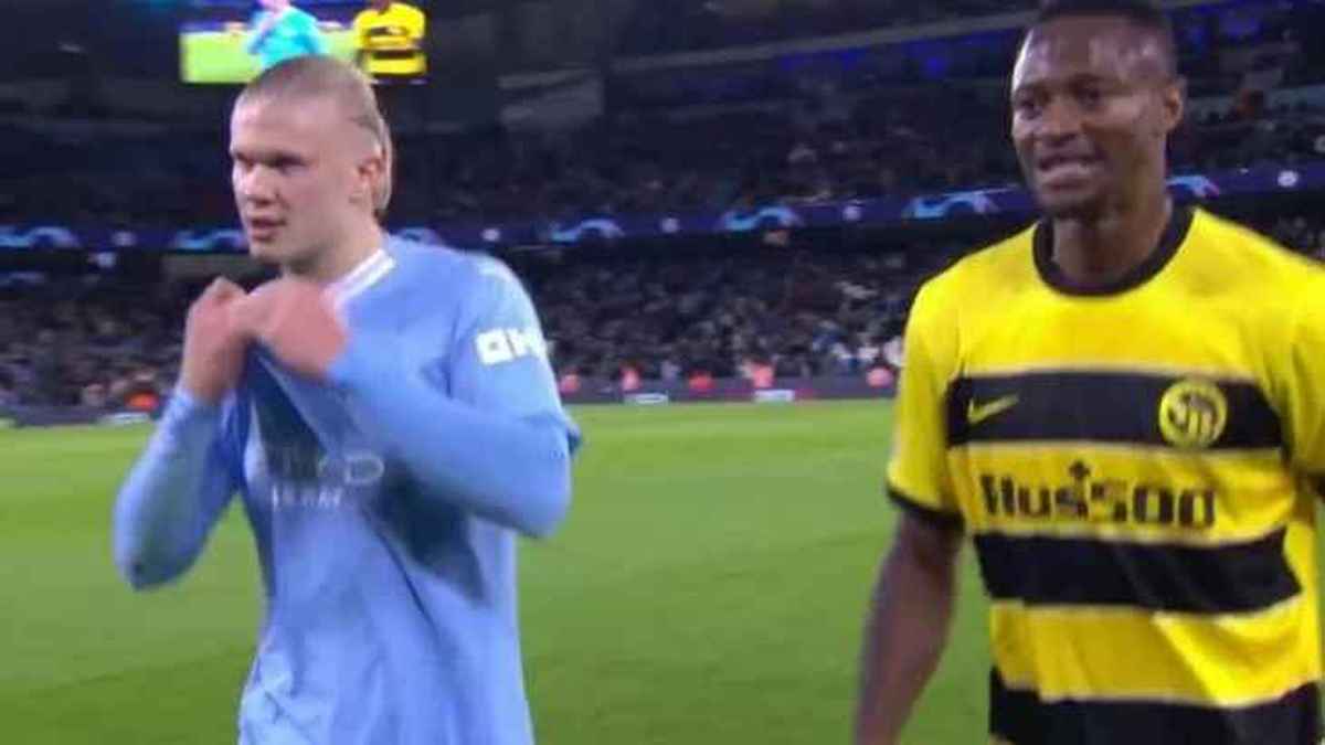 وبينما كان اللاعبون يتجهون إلى النفق، اقترب كامارامن النرويجي وطلب قميص هالاند – وهو طلب غريب بالنظر إلى أنه كان في نهاية الشوط الأول. على الرغم من أن اللاعب البالغ من العمر 23 عامًا هز رأسه على ما يبدو بناءً على الطلب، إلا أنه وافق وخلع قميصه وسلمه إلى اللاعب الغيني الدولي.